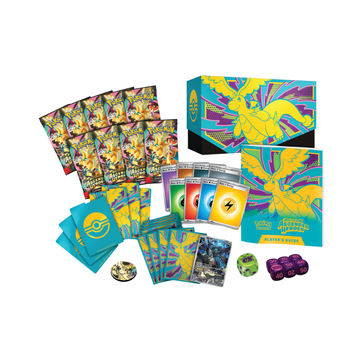 Centralnym motywem dodatku Ascended Heroes jest ogromna siła i majestat legendarnych Pokémonów, takich jak Mega Dragonite ex, a także Pokémony Trenerów, które prezentują się na zupełnie nowych, dynamicznych ilustracjach ukazujących ich najbardziej efektowne ataki. Ascended Heroes ETB (Elite Trainer Box) to kompletne narzędzie do gry, budowy talii i kolekcjonowania – gotowe zarówno na turniejowe starcia, jak i spokojne otwieranie boosterów.
