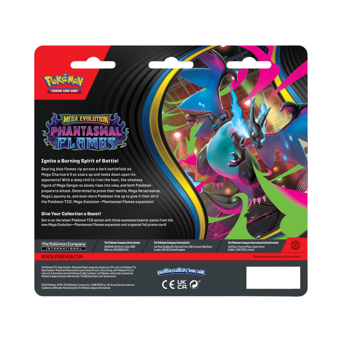 Phantasmal Flames 3 Pack Blister – 3 boostery, karta promo i moneta! Otwórz bramy najnowszej serii Pokémon TCG i zdobądź wyjątkowe karty!